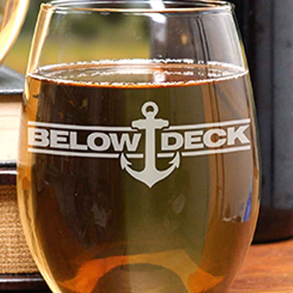 These stemless wine glasses are perfect for any Below Deck fan. Anchor down with a glass of wine and watch Below Deck while you drink your favorite wine out of this set of 2 wine glasses that features the official Below Deck Anchor on the front of the glass.