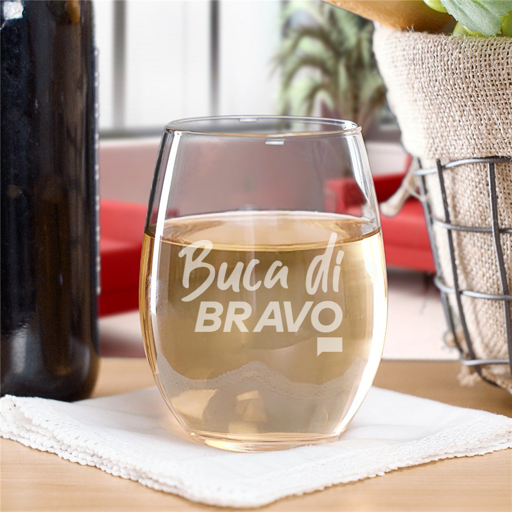 Buca Di Bravo Laser Engraved Stemless Wine Glass