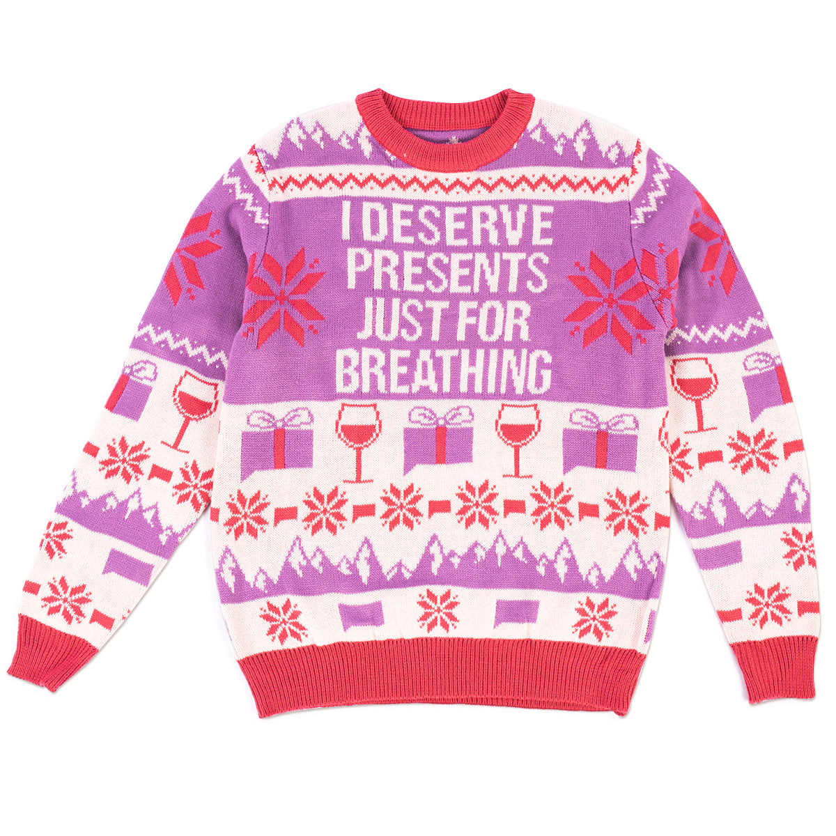 Show that you deserve presents this season with this officially licensed I Deserve Presents Holiday Sweater! Featuring the iconic line from Real Housewives of Salt Lake City star, Lisa Barlow, this apparel is perfect for gifting around the holidays, birthdays and special occasions. This sweater will make each Bravoholic happy with cheer.
